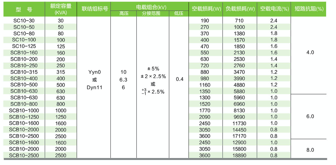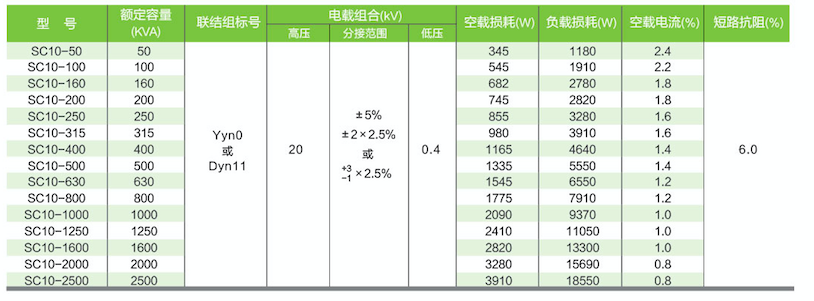 SC(B)10型20kv主要性能參數(shù):